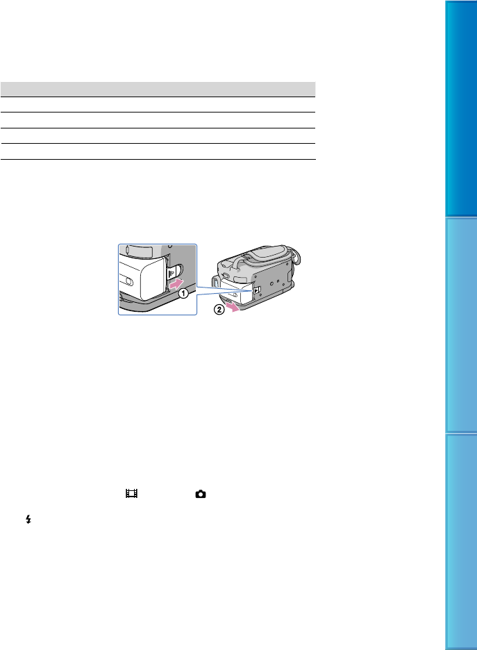 Time measured with the camcorder at 25 C (77 F). 10 C to 30 C (50 F to 86 F) is recommended.
