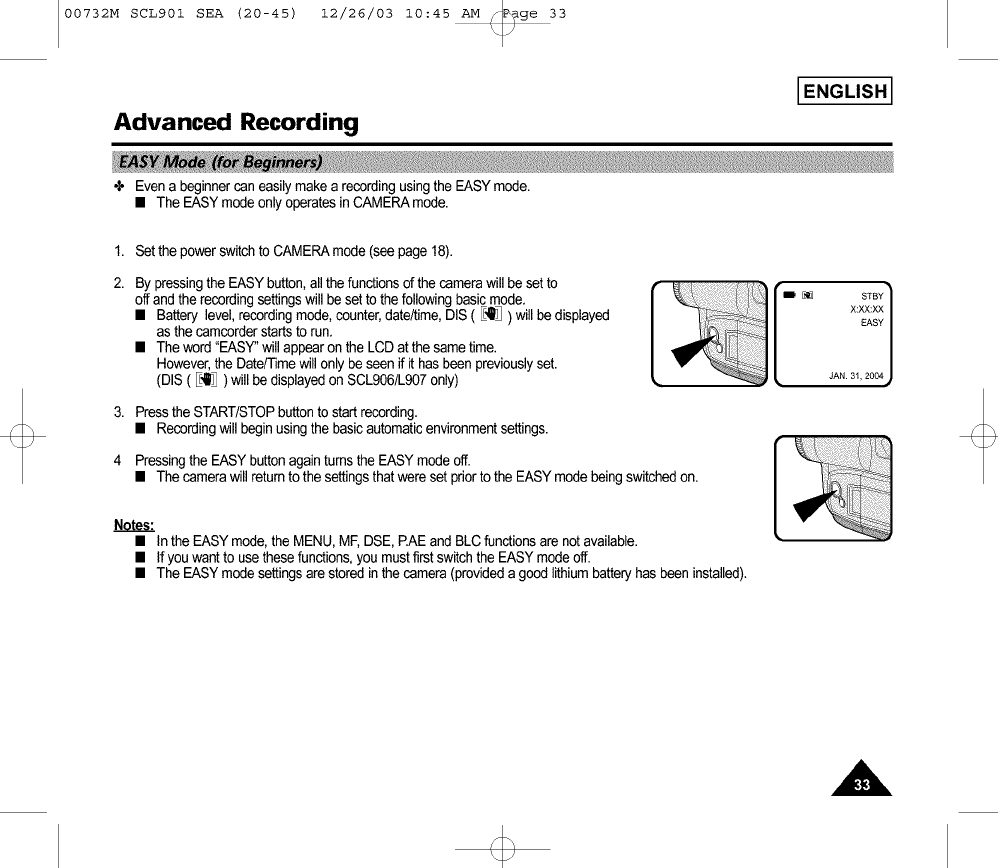 4 Pressingthe EASY buttonagainturnsthe EASYmodeoff.