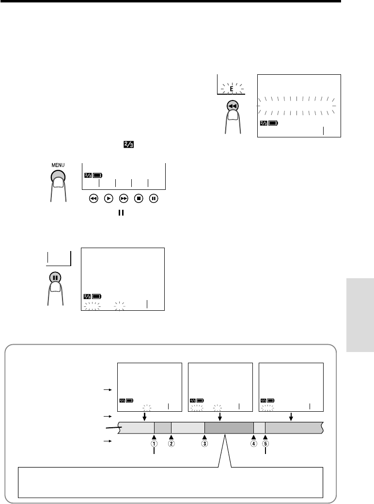 Press the REW button (C ) to rewind the tape to E and begin playback.