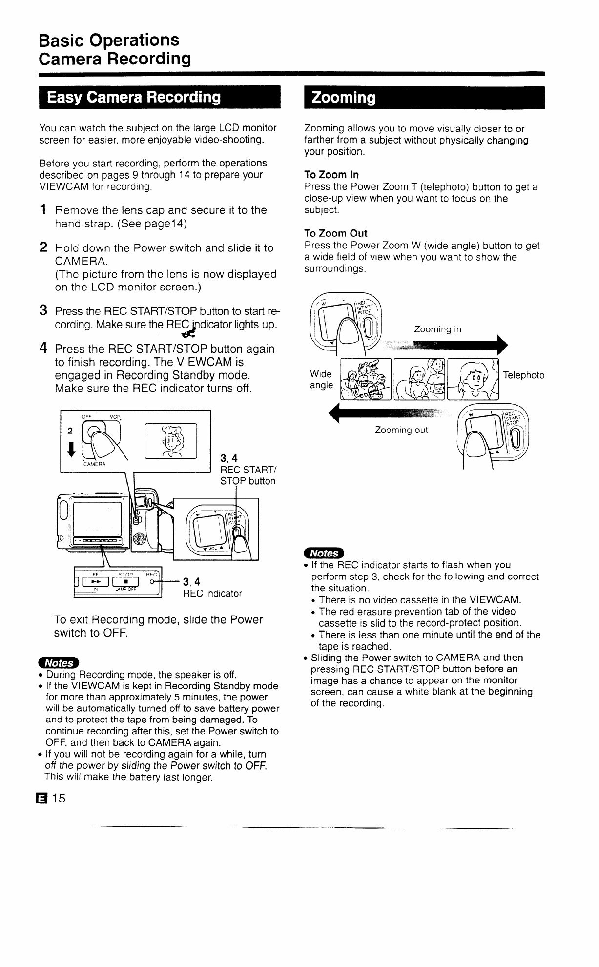 l If the VIEWCAM is kept in Recording Standby mode