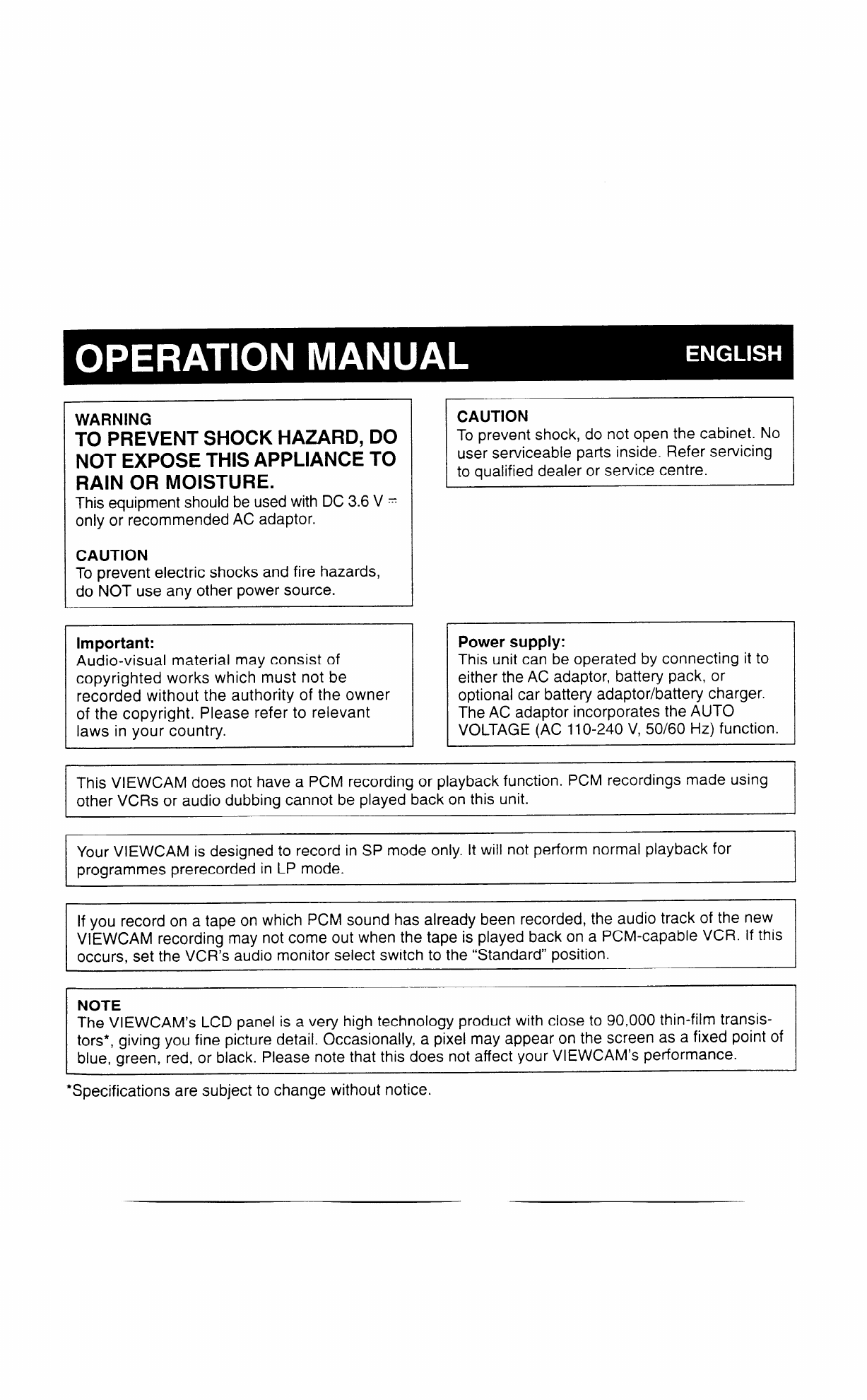 The VIEWCAM’s LCD panel is a very high technology product with close to 90,000 thin-film transis-