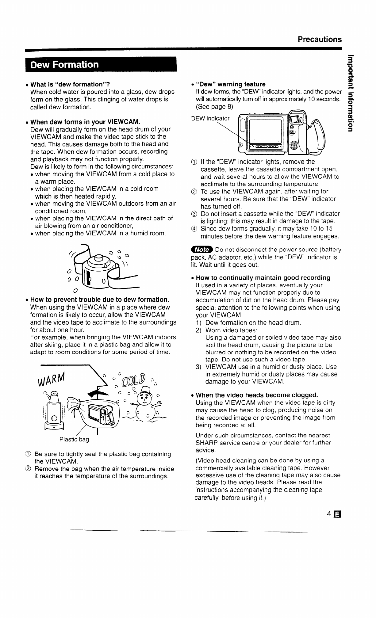 l When dew forms in your VIEWCAM.