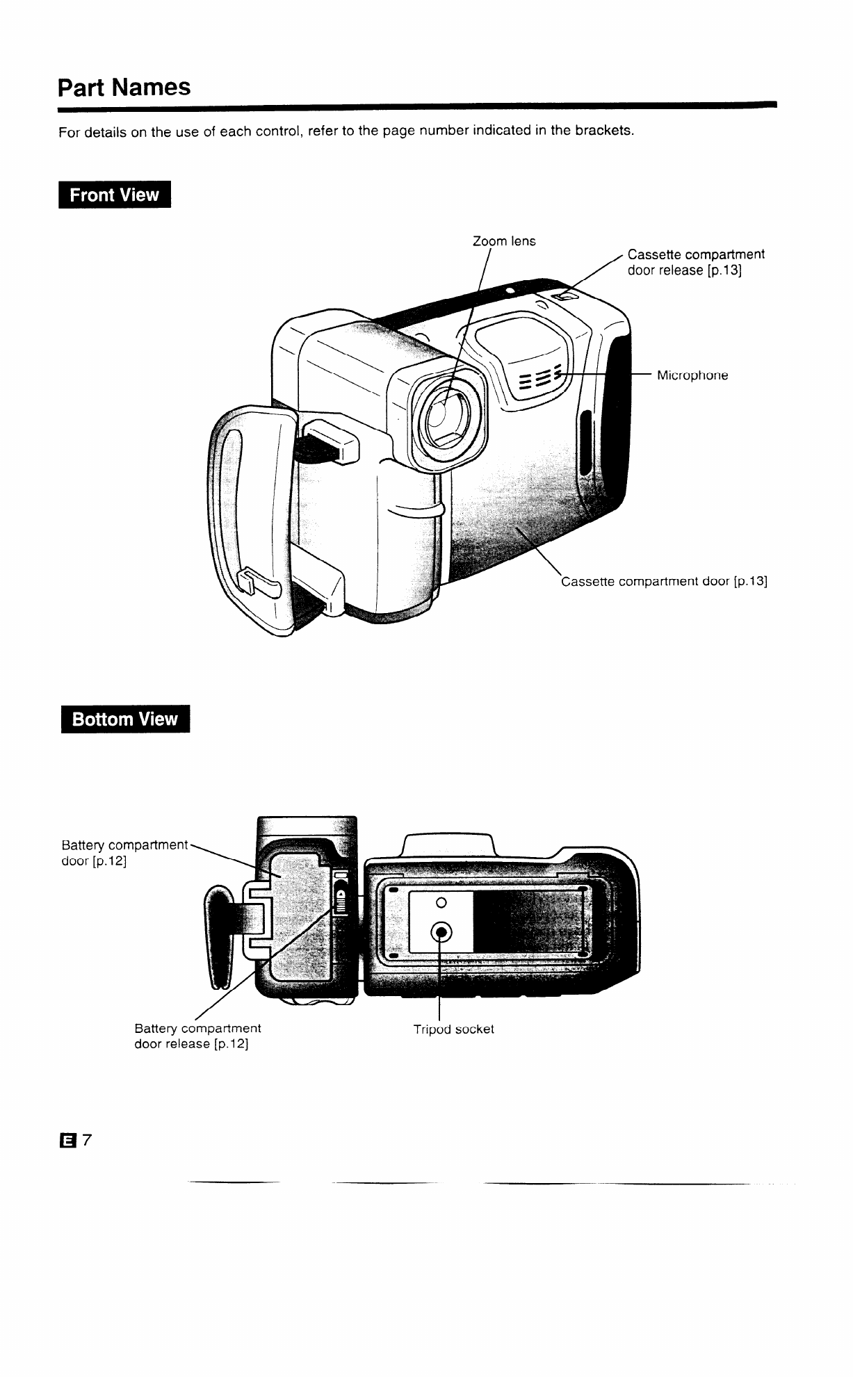For details on the use of each control, refer to the page number indicated in the brackets.