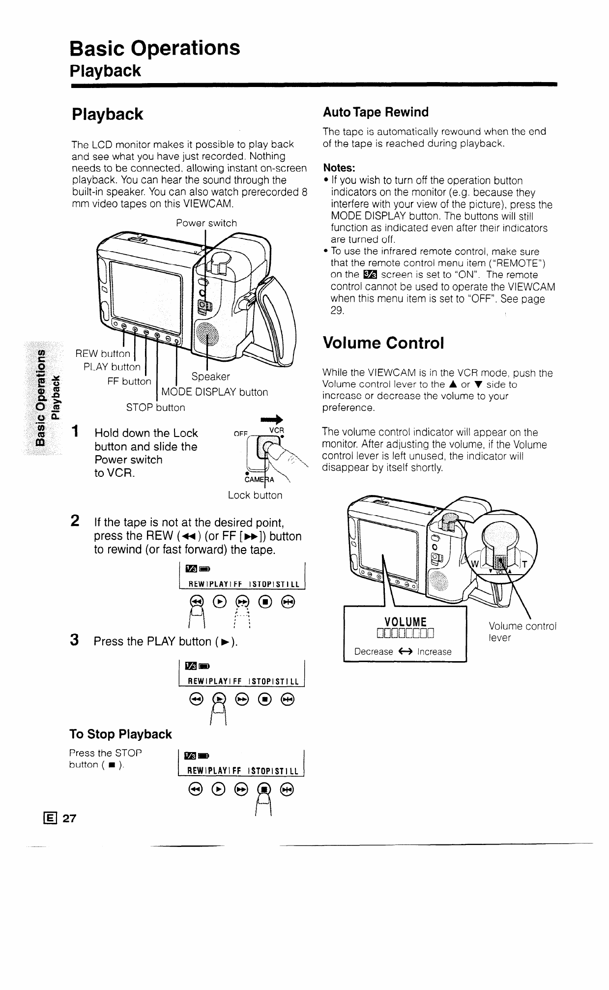 While the VIEWCAM is in the VCR mode, push the