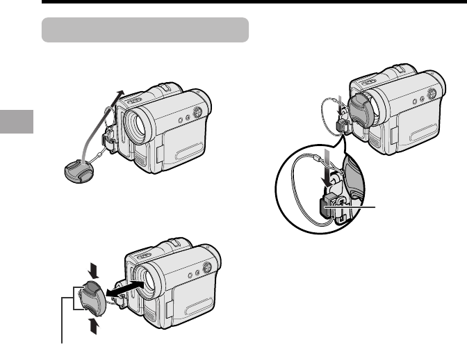 Attach the strap of the lens cap to the hand