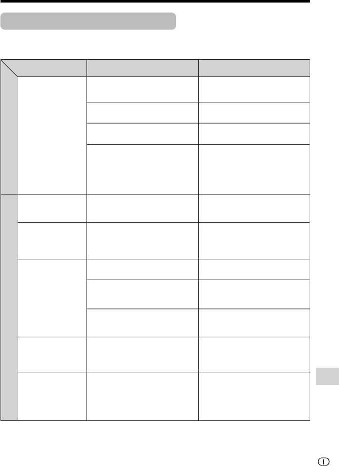 Prima di richiedere interventi di assistenza tecnica, prendere in esame la seguente tabella