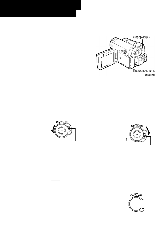 • Не изменяйте режим камкордера, используя переключатель выбора носителя информации, во время