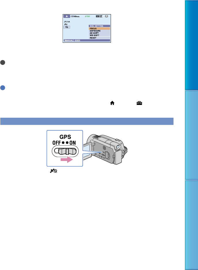 Set the GPS switch to ON ( appears on the LCD screen). Your camcorder starts trying