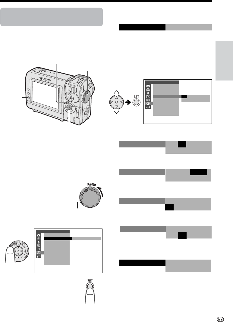5 Press l or m to select “SETTING”,