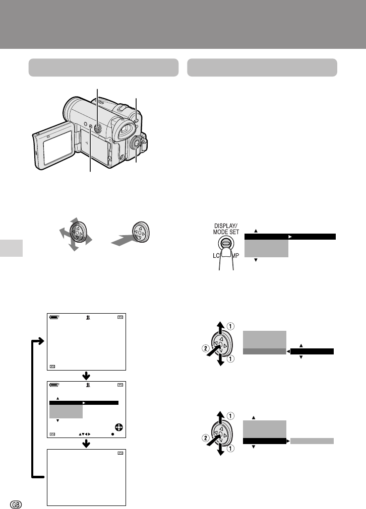camcorder settings by using the Operation
