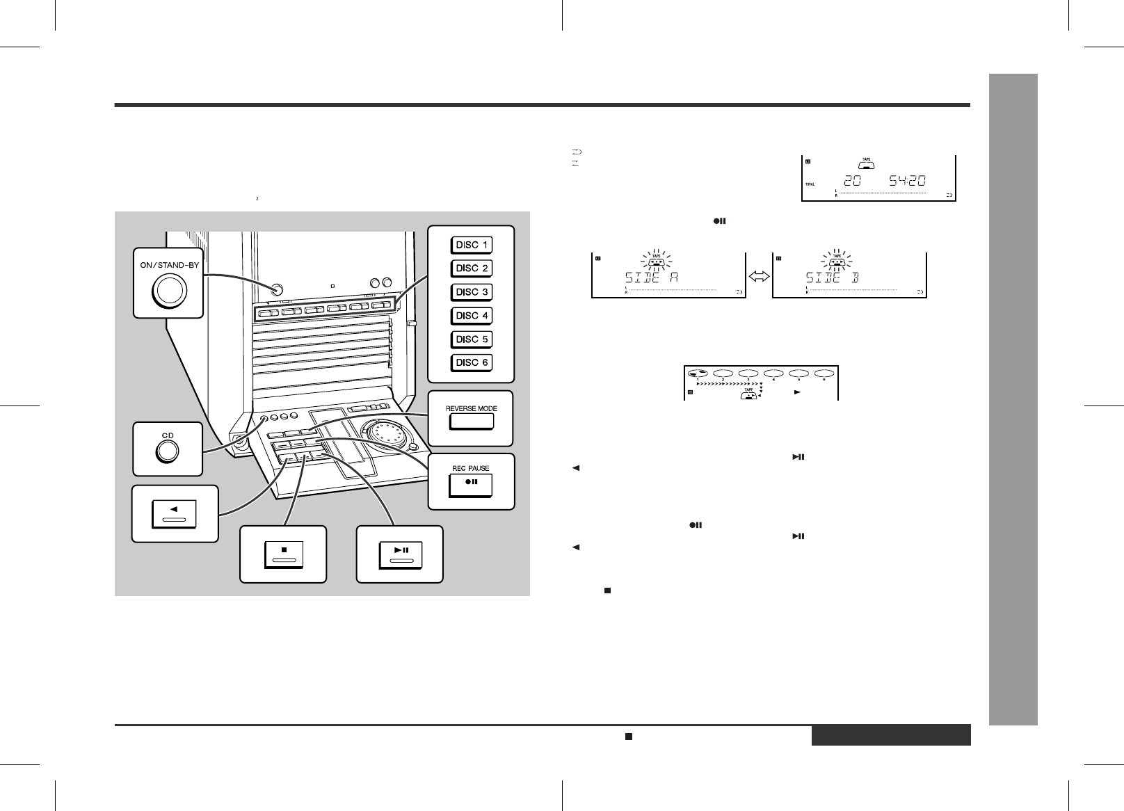 To record on both sides, begin on side A. (If recording is started from side B, the