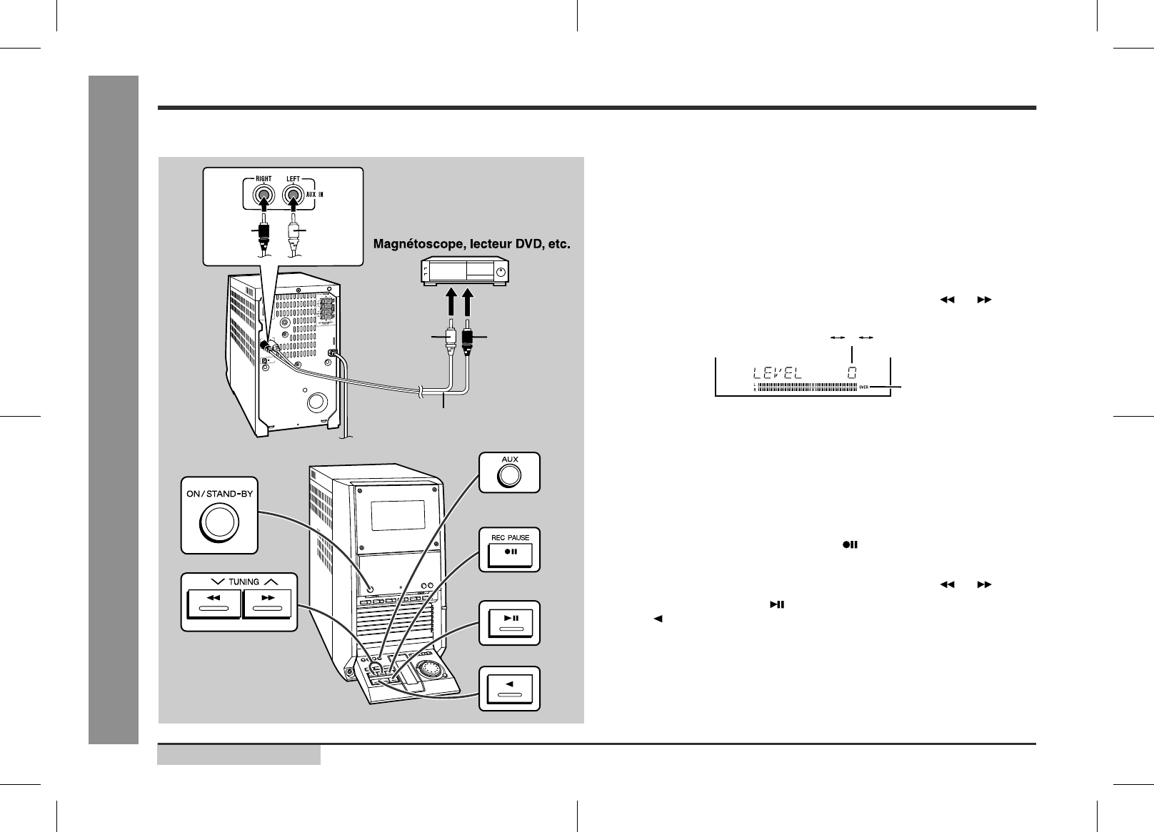 ment externe VCR, DVD, etc. aux prises AUX IN.