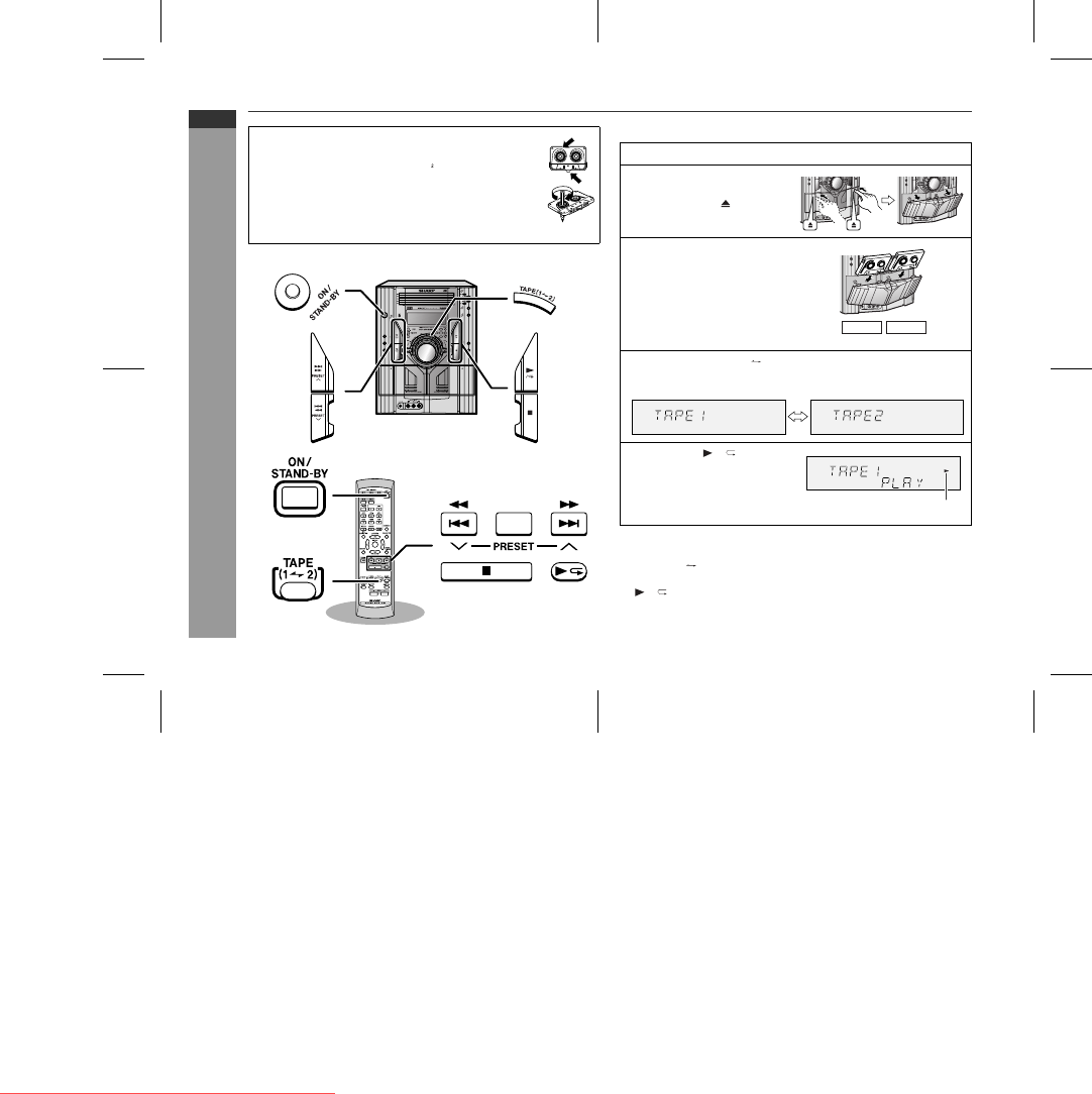Listening to a cassette tape (TAPE 1 or TAPE 2)