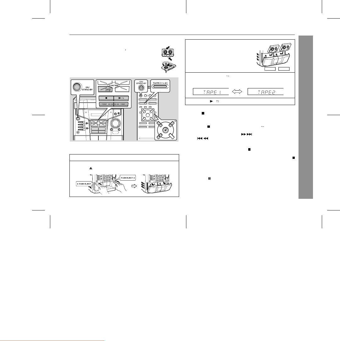 Listening to a cassette tape (TAPE 1 or TAPE 2)