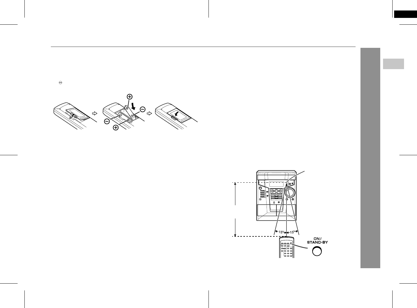 The remote control can be used within the range shown below: