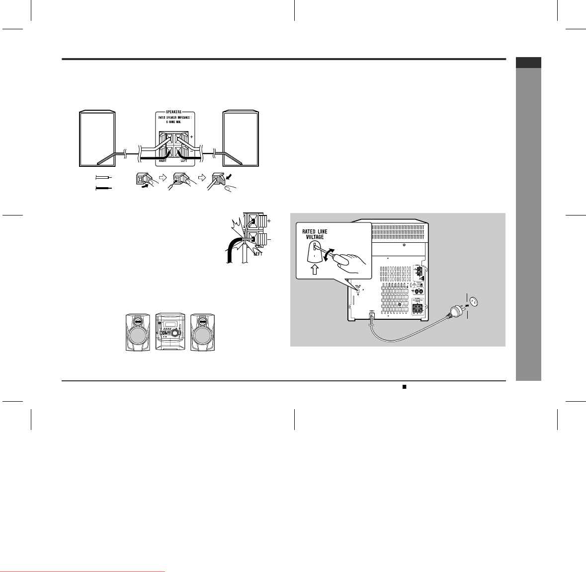 Do not let the bare speaker wires touch each other.