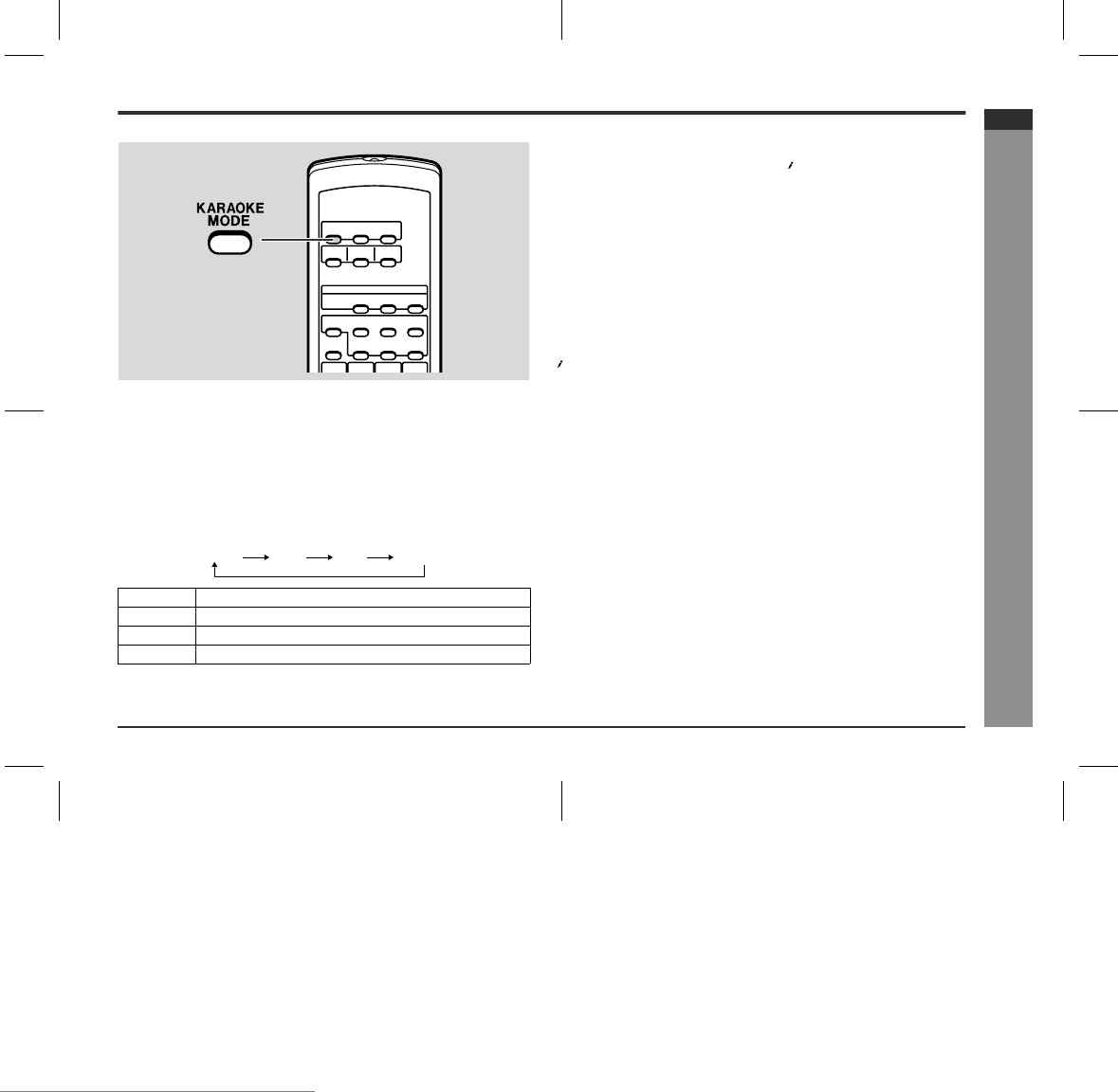 Each time the KARAOKE MODE button is pressed, the mode will change as follows: