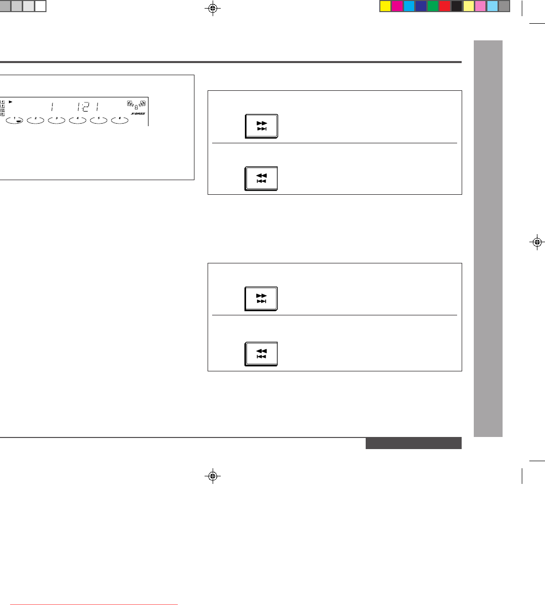 ● When the end of the last track is reached during fast forward, “DISC END” will
