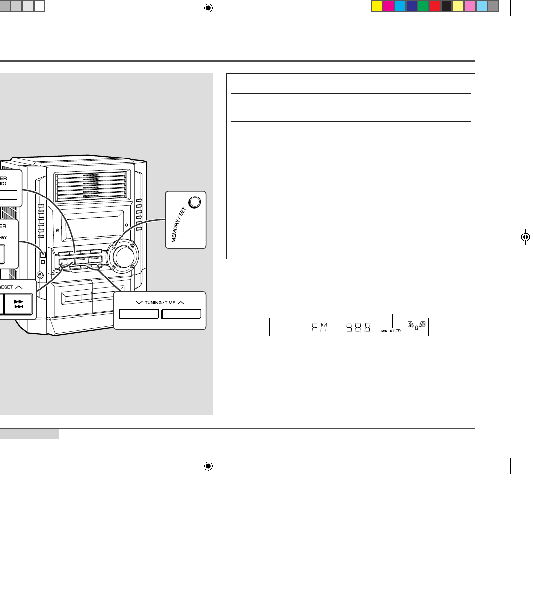 Appuyer sur la touche TUNER (BAND) pour allumer le voyant “ST”.