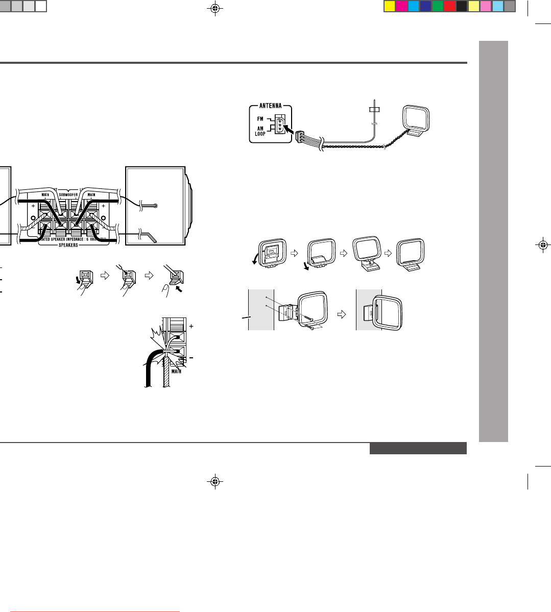 ● Do not let the bare speaker wires touch each other.