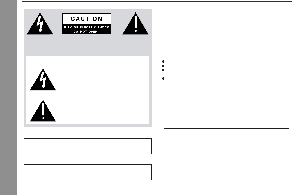 CAUTION: TO REDUCE THE RISK OF ELECTRIC SHOCK,