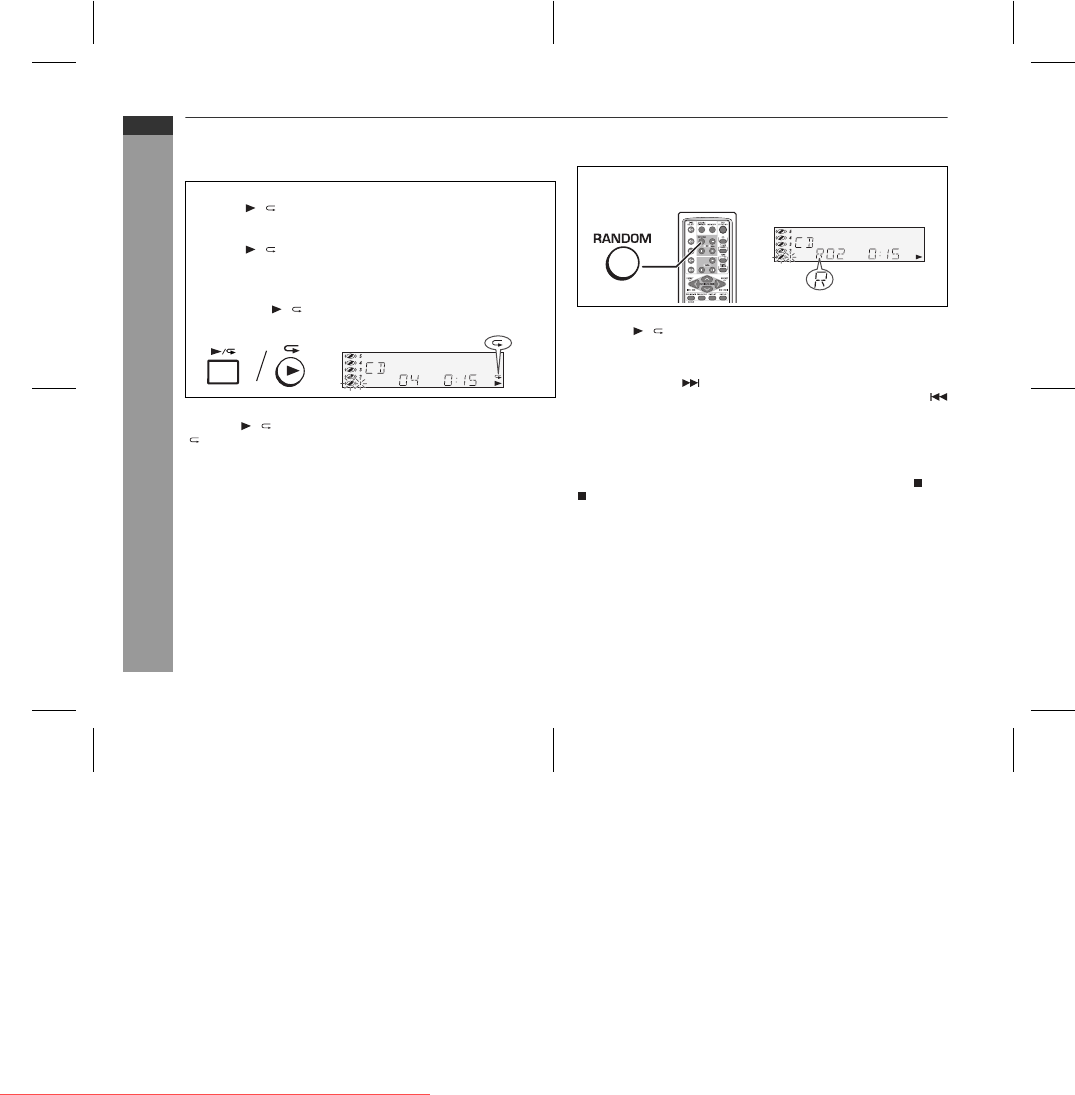 Repeat play can play all 5 discs, all tracks on a chosen disc, or a pro-