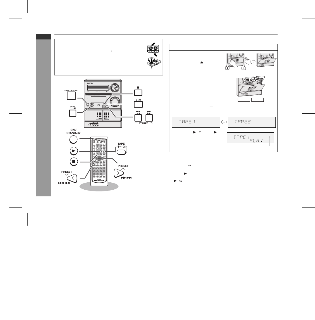 Listening to a cassette tape (TAPE 1 or TAPE 2)