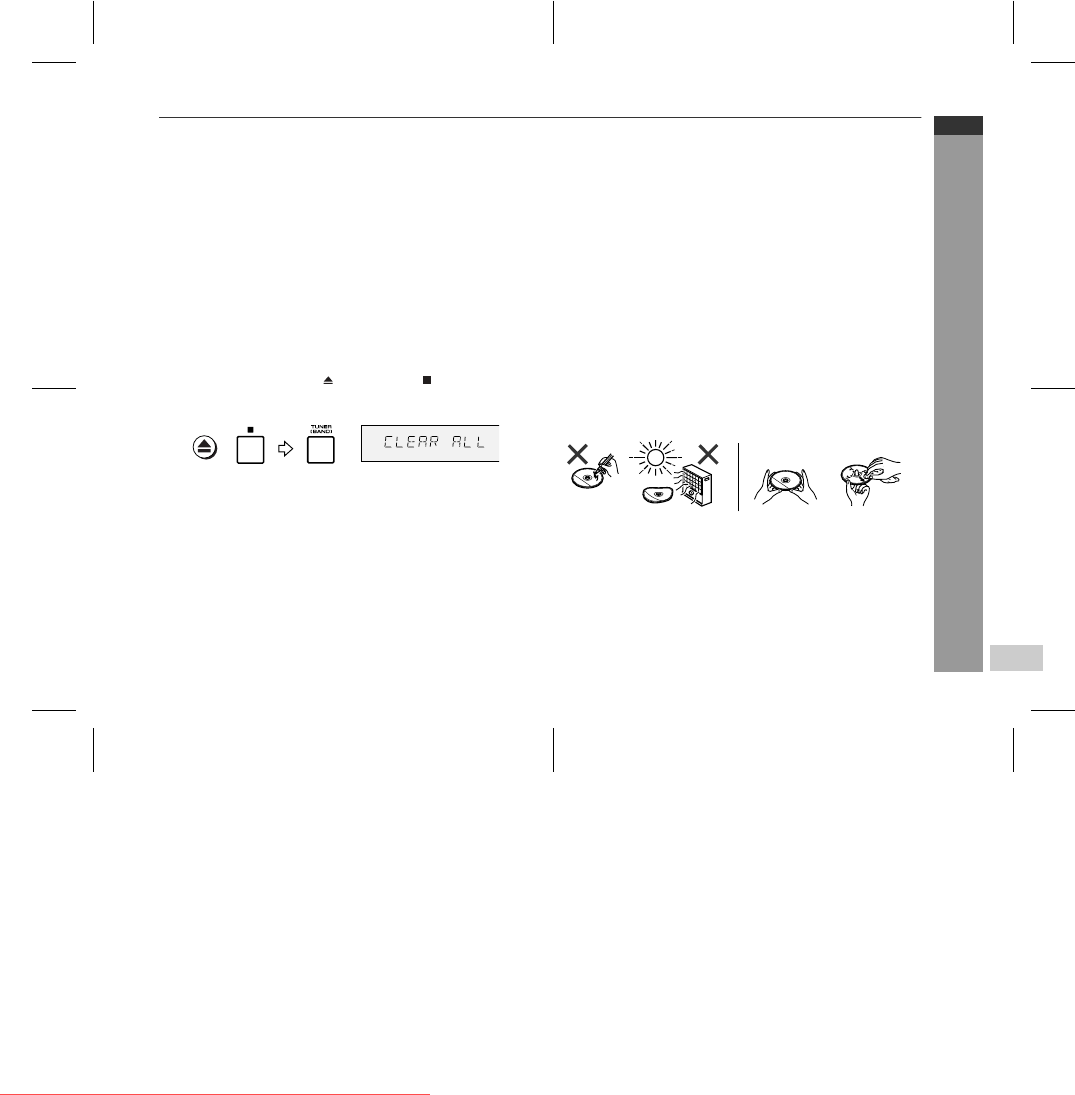 TUNER (BAND) button until "CLEAR ALL" appears.