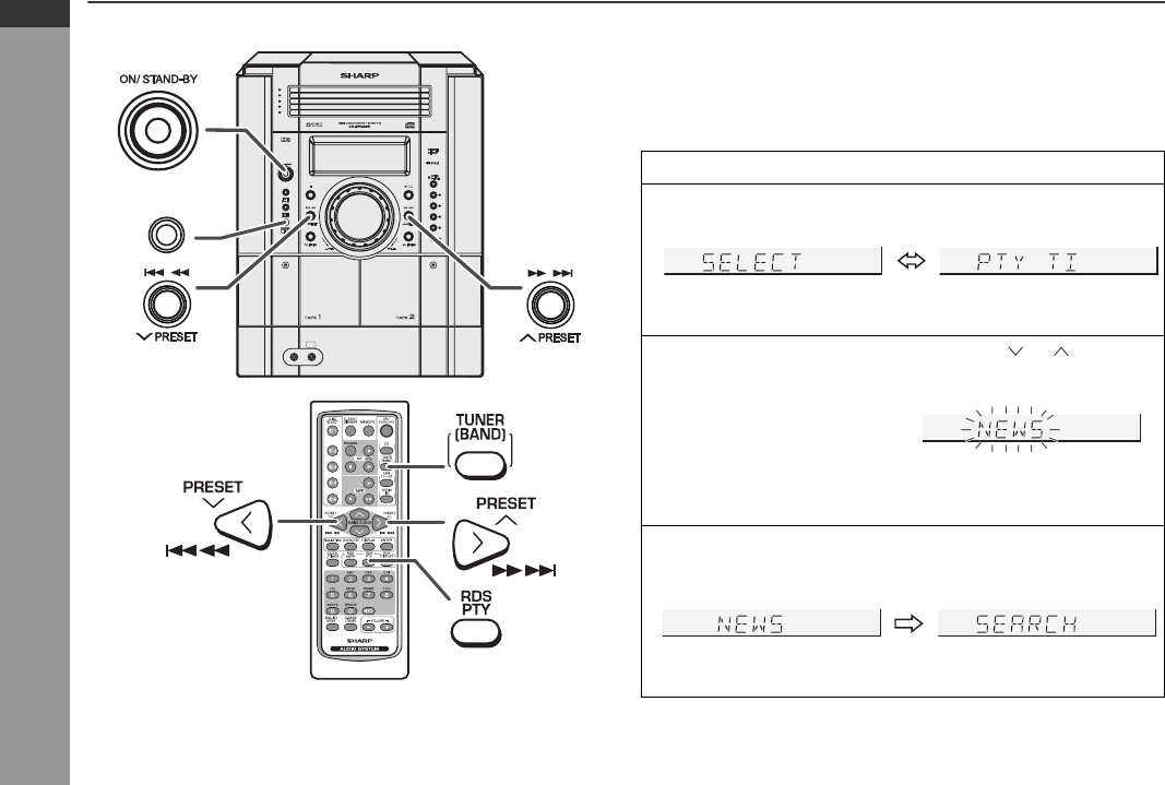 “SELECT” and “PTY TI” will appear alternately for about 6