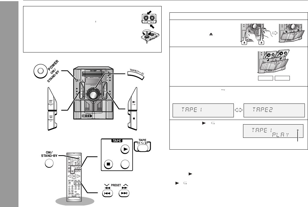 Listening to a cassette tape (TAPE 1 or TAPE 2)