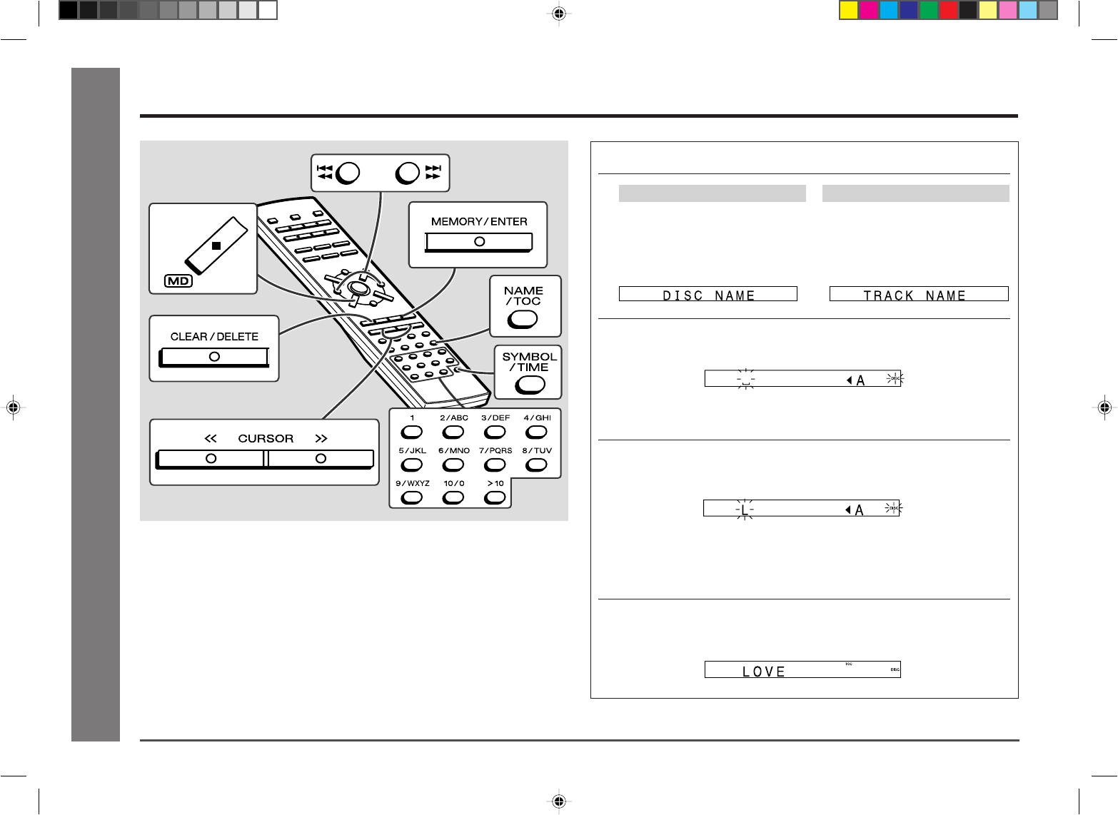 One disc name and up to 255 track names can be created per disc (a maximum of