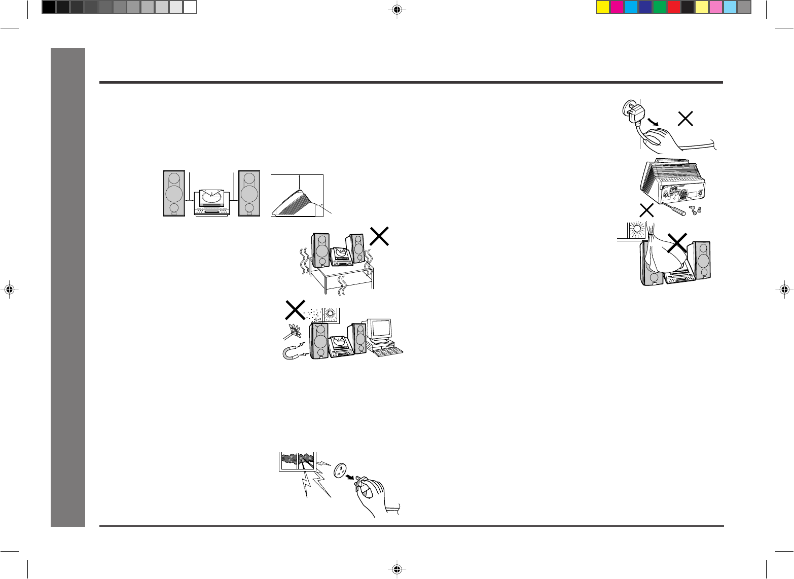 ● If your system does not work properly, unplug it. Plug the AC power lead