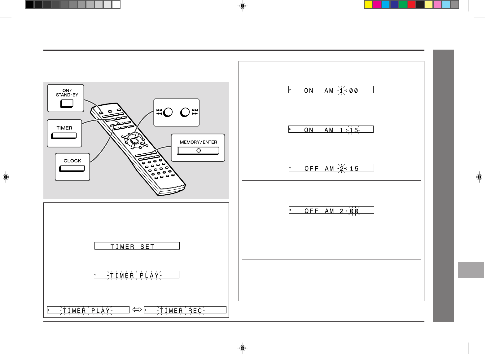 ● Before setting the timer, press the CLOCK button to check that the clock is on