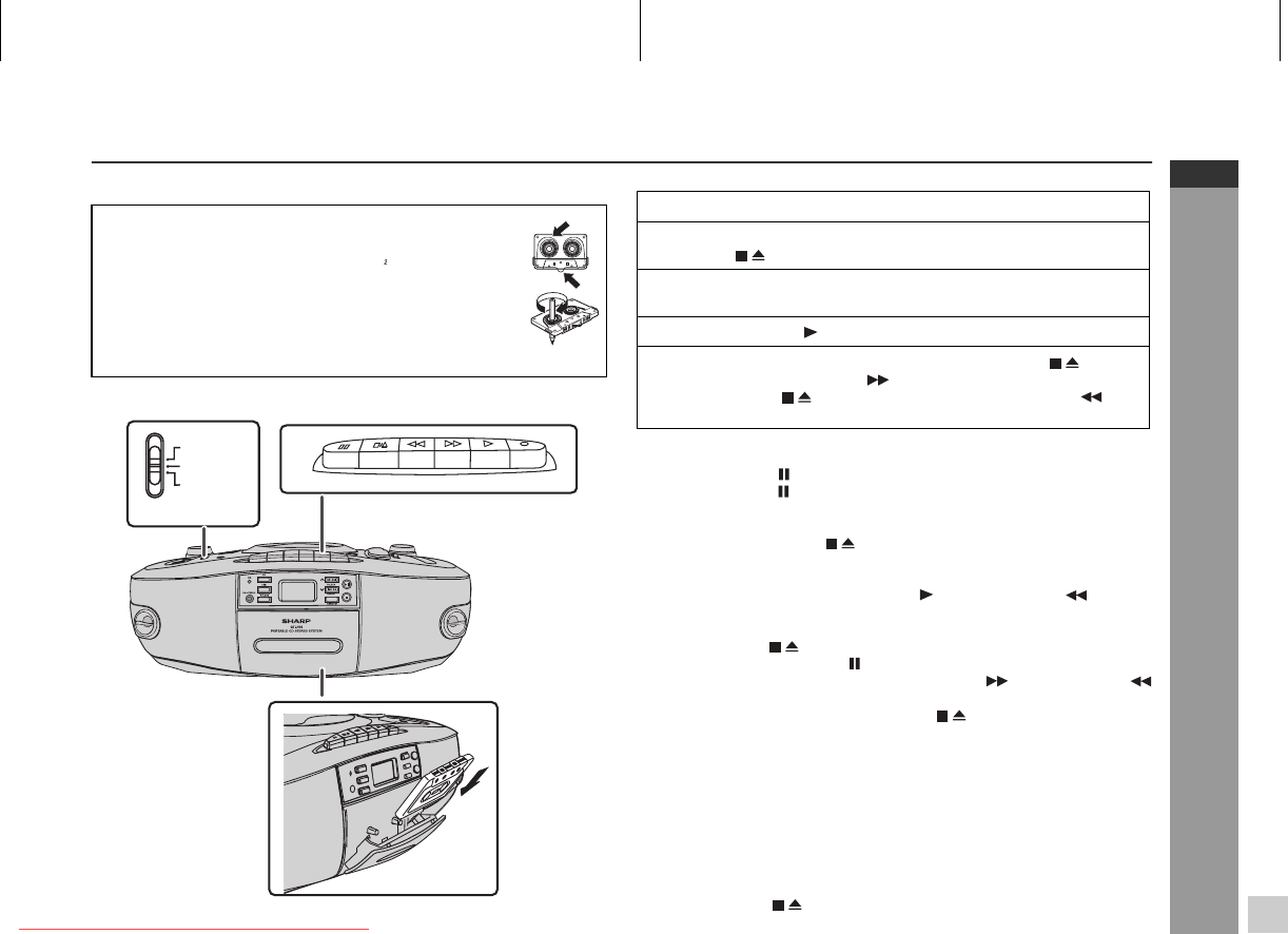 PAUSE STOP/EJECT F.FWD REWIND PLAY RECORD