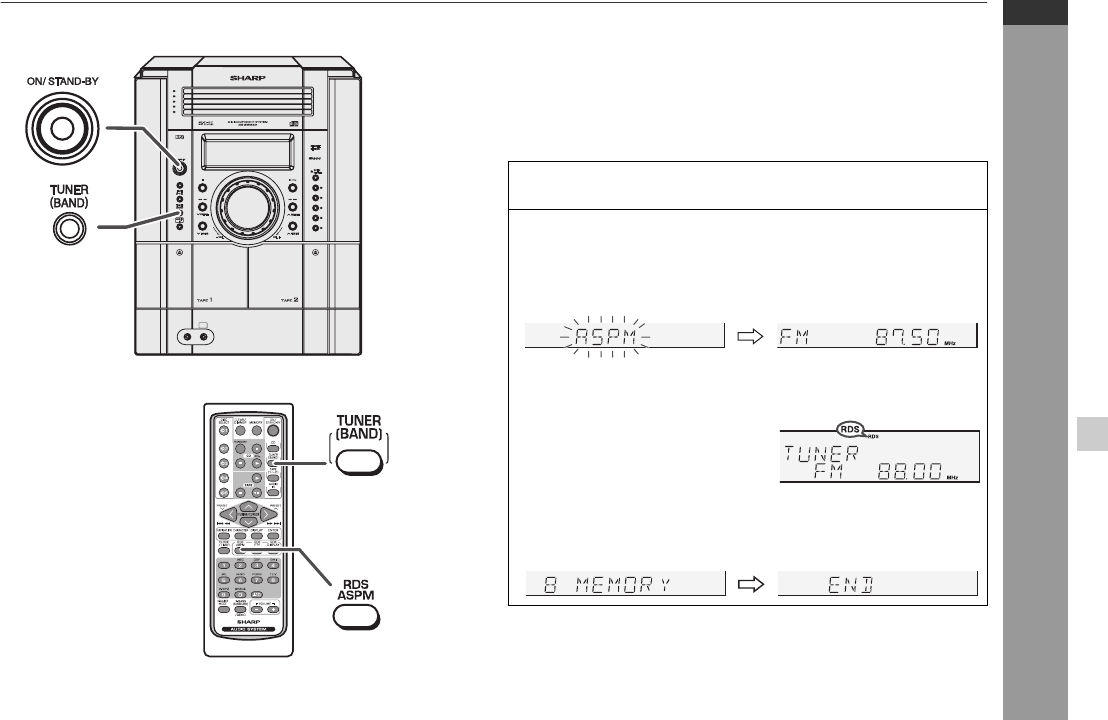 2 Drücken Sie die RDS ASPM-Taste auf der Fernbedienung,