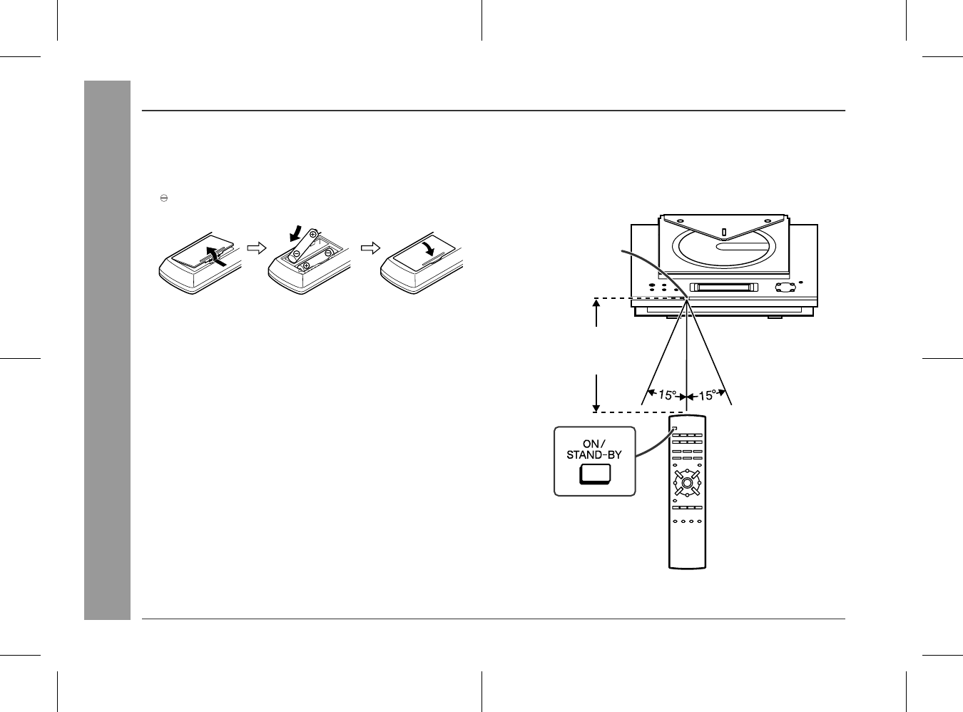 The remote control can be used within the range shown below: