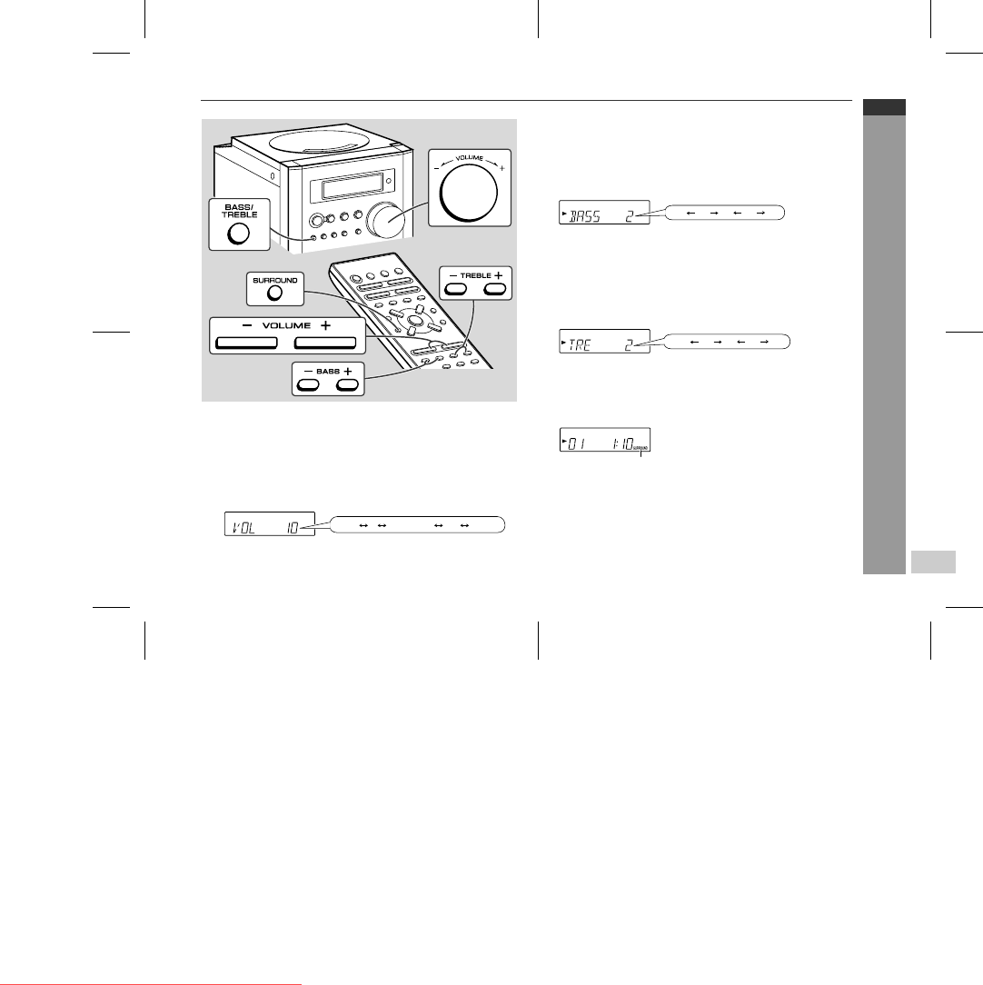 2 Within 5 seconds, turn the VOLUME control to adjust the bass.
