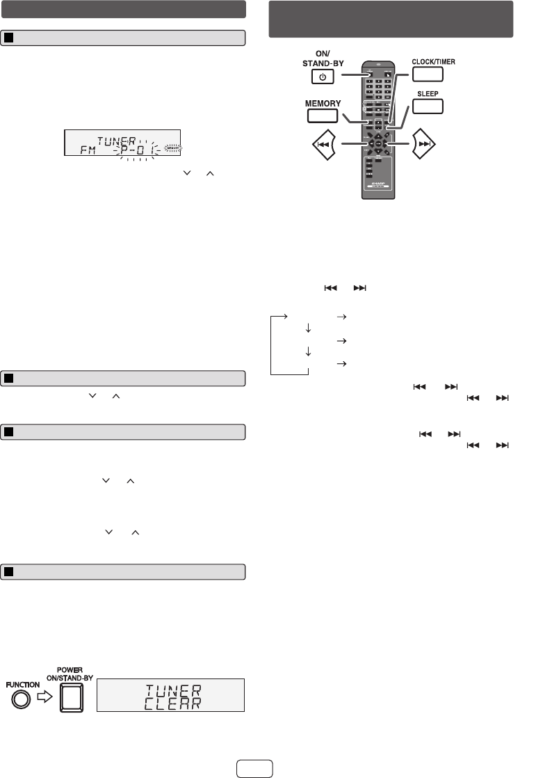 POWER ON/STAND-BY button until “TUNER CLEAR”