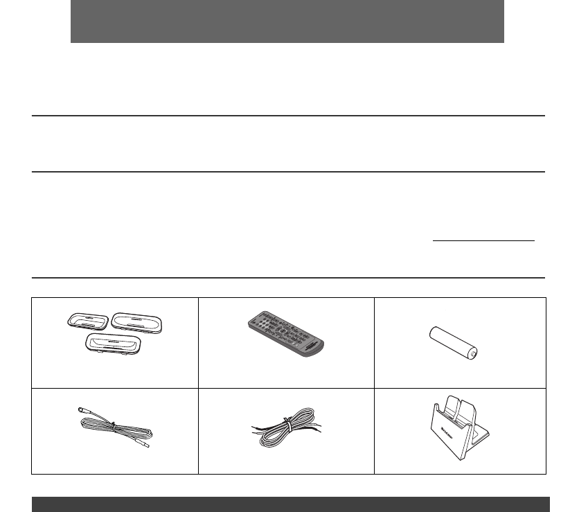 Adaptateurs iPod x 3 Télécommande x 1 Pile « AA » (UM/SUM-3, R6,