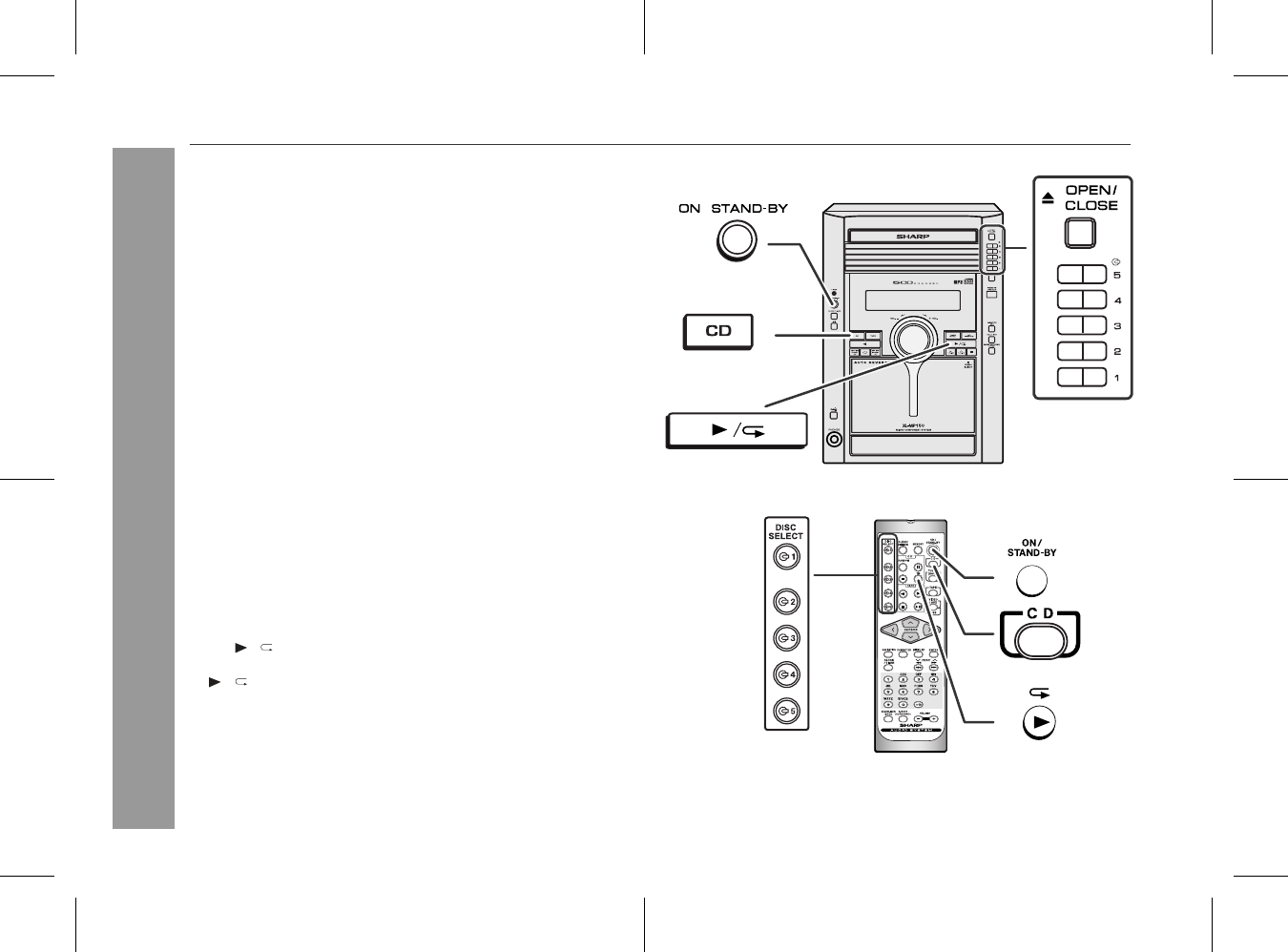 CD button (main unit and remote control): The unit turns on and