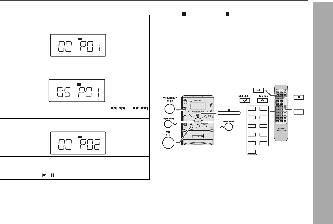 1 Whilst in the stop mode, press the MEMORY/DISP button