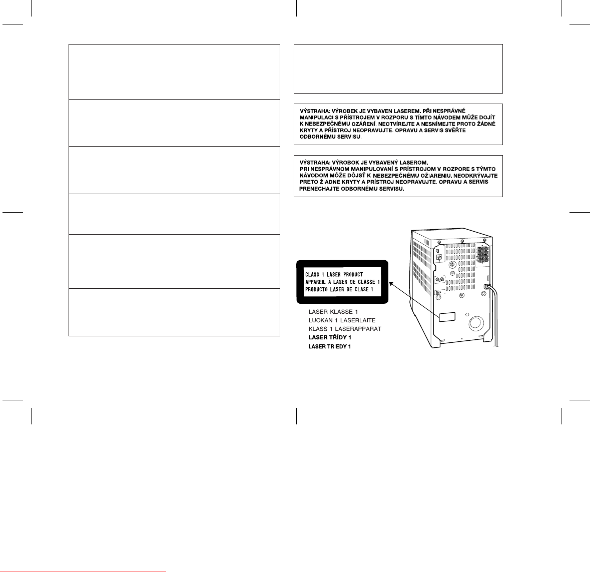 Försök inte ta isär höljet eftersom CD-spelarens laserstråle är skadlig för