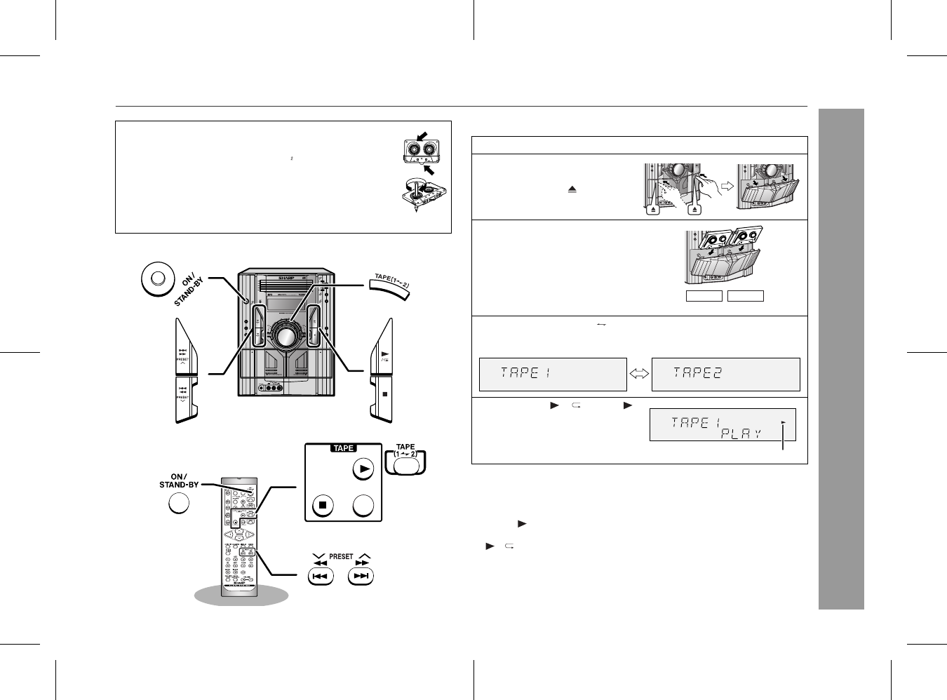 Listening to a cassette tape (TAPE 1 or TAPE 2)