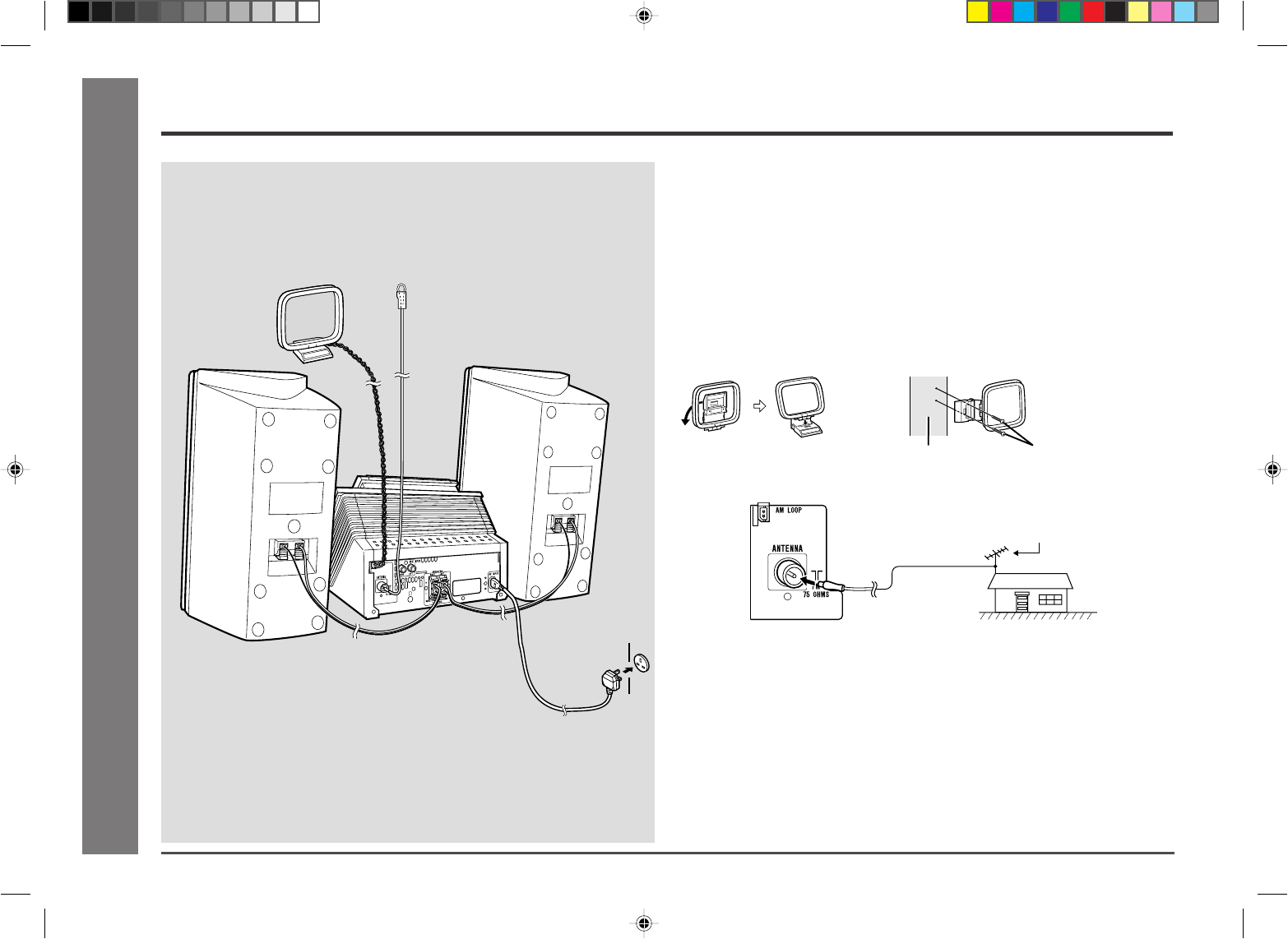 Connect the AM loop aerial wire to the AM LOOP socket. Position the AM loop aerial