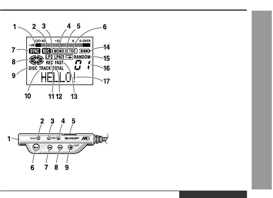 3. Long-play/Recording Mode Indicator. . . . . . 10, 17