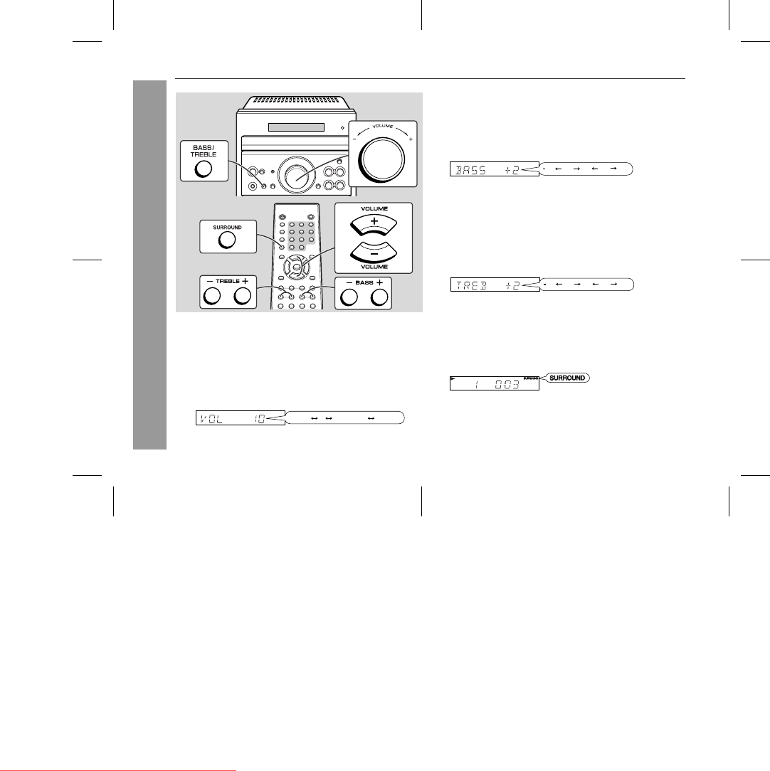 2 Within 5 seconds, turn the VOLUME control to adjust the bass.