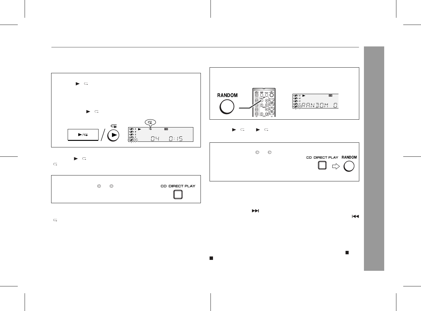 After performing repeat or random play, be sure to press the (CD