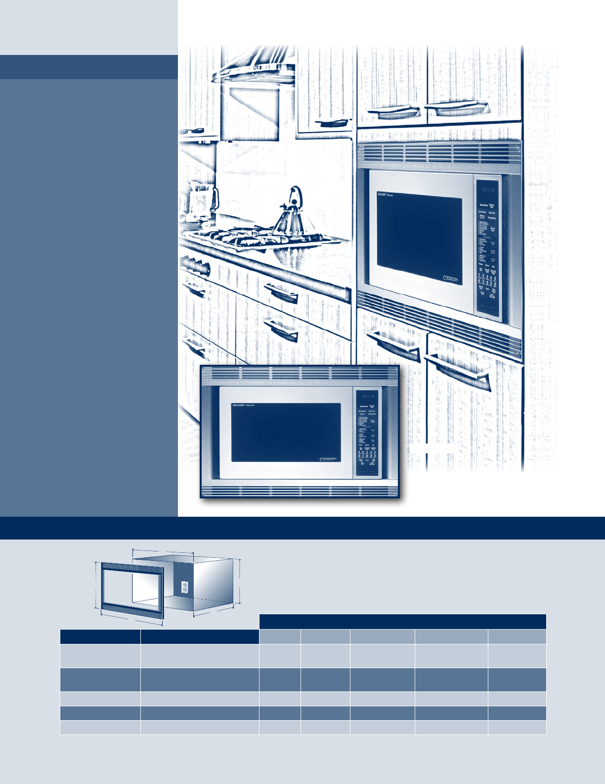 * This model can be built into a cabinet or wall by itself or above any electric wall oven or warming drawer using the appropriate Sharp Built-in Kit. It cannot be built-in