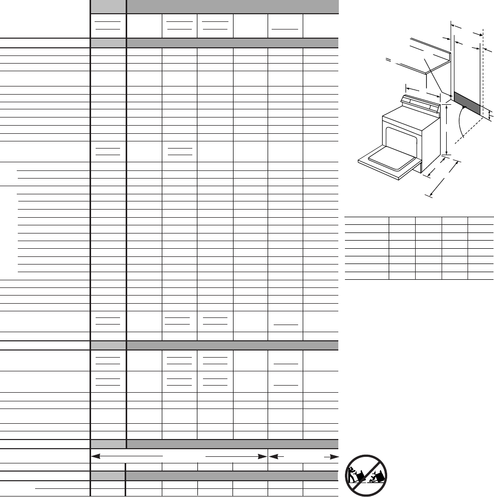 Note: 30" ranges conform to U.L. requirements for 0" spacing