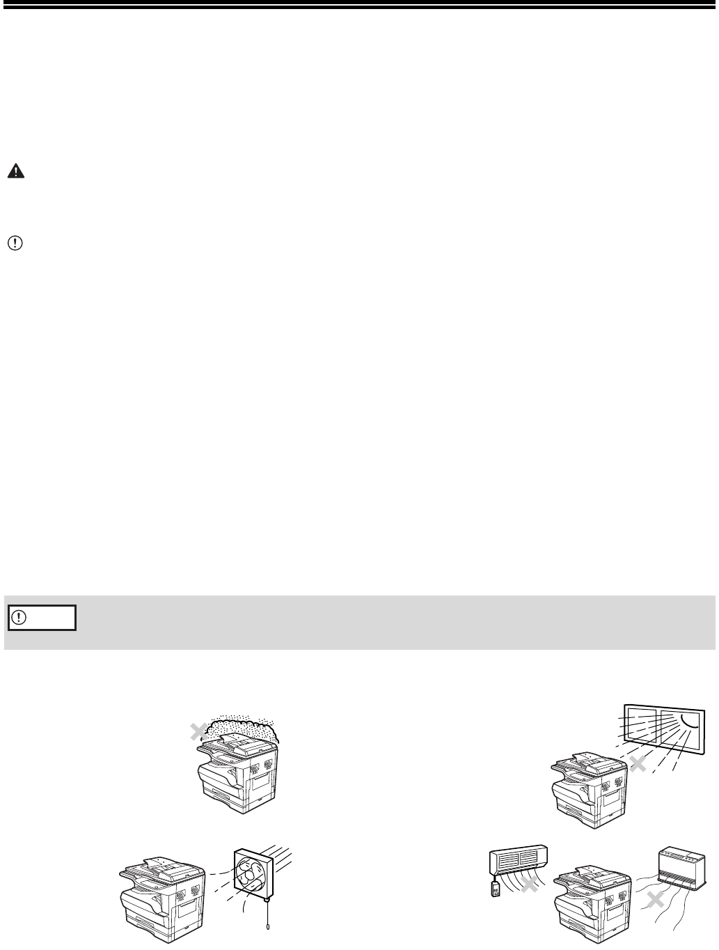 • Do not cover the machine with a dust cover, cloth or plastic film while the power is on. Doing so may prevent heat